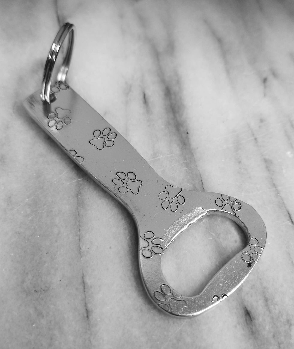 A unique token of affection that will delight any drink lover. Our Bottle Opener Keyrings are an Ideal Hamper filler for any special occasion. Why Not upgrade your gift to our Bottle Opener with Stirrup Holder? A great conversation starter when hosting; best of all, your bottle opener won't go missing again. Every message has been individually stamped by hand and can be tailored to your own specifications.